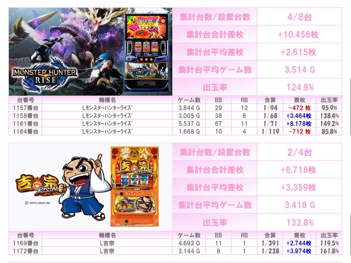 ※本記事中のデータは全て神の子来店ホール調査取材班が独自に調査しているものです。