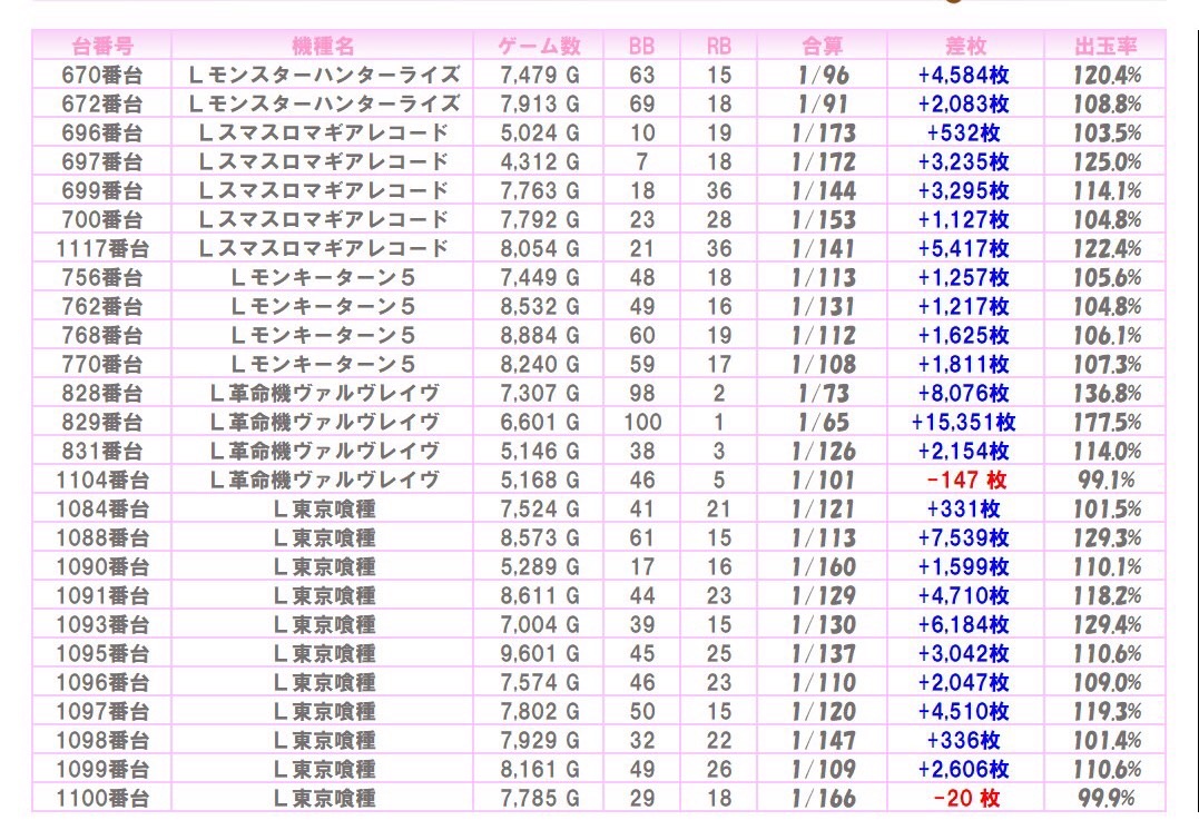 ※本記事中のデータは全て神の子来店ホール調査取材班が独自に調査しているものです。