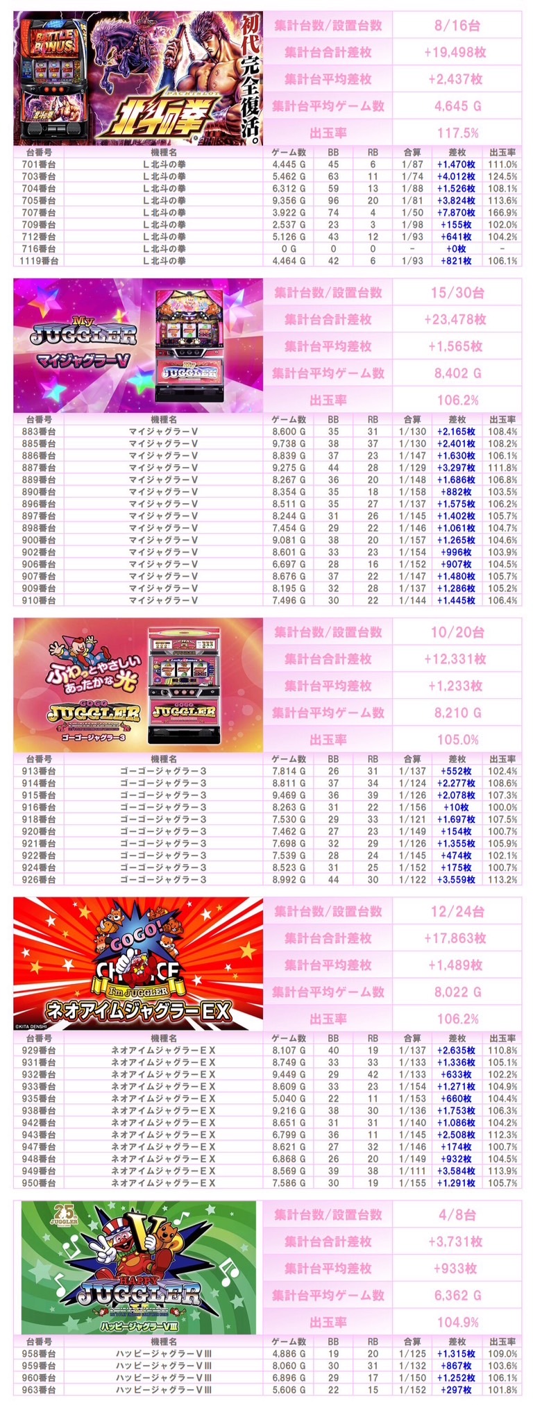 ※本記事中のデータは全て神の子来店ホール調査取材班が独自に調査しているものです。