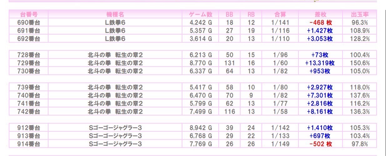 ※本記事中のデータは全て神の子来店ホール調査取材班が独自に調査しているものです。