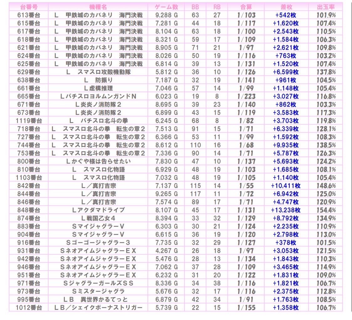 ※本記事中のデータは全て神の子来店ホール調査取材班が独自に調査しているものです。