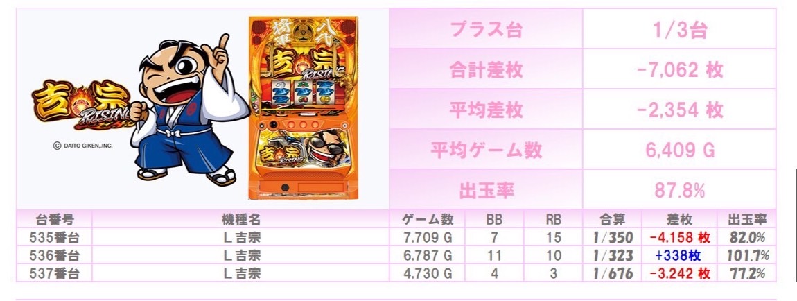 ※本記事中のデータは全て神の子来店ホール調査取材班が独自に調査しているものです。