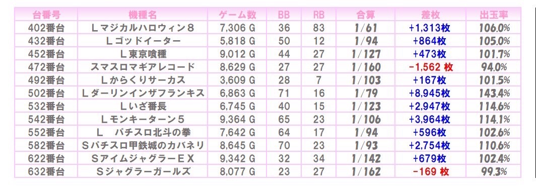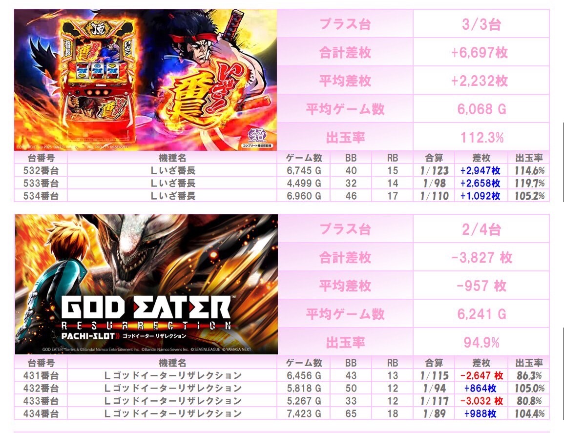 ※本記事中のデータは全て神の子来店ホール調査取材班が独自に調査しているものです。