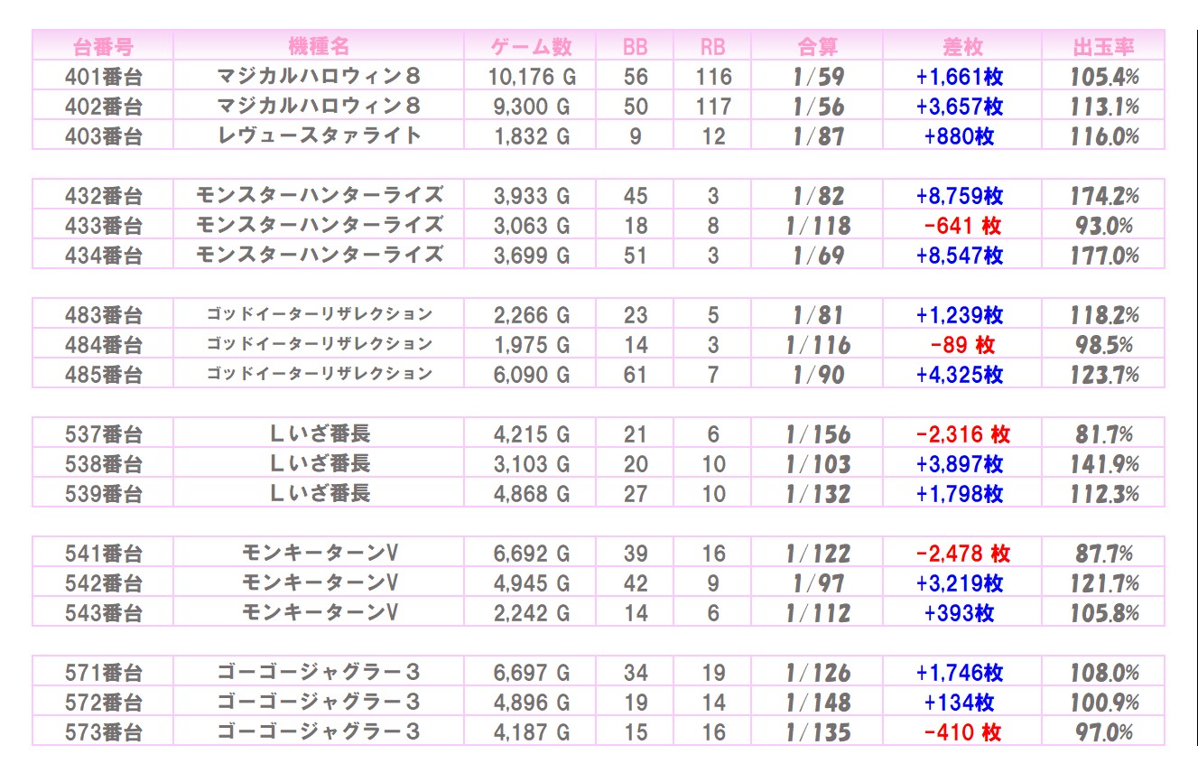 ※本記事中のデータは全て神の子来店ホール調査取材班が独自に調査しているものです。