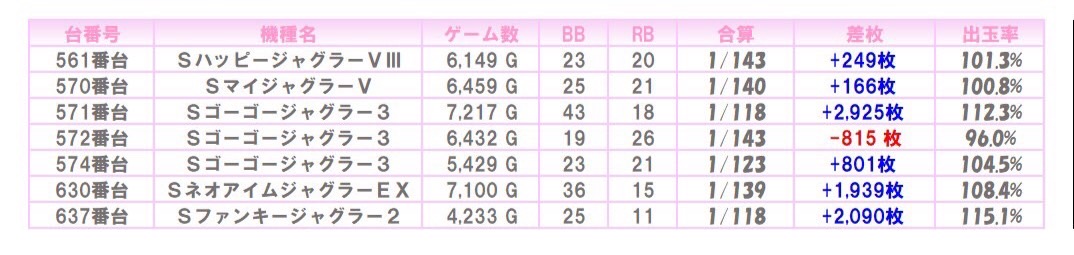 ※本記事中のデータは全て神の子来店ホール調査取材班が独自に調査しているものです。