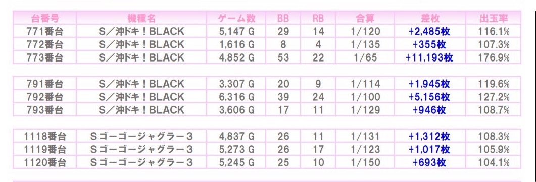 ※本記事中のデータは全て神の子来店ホール調査取材班が独自に調査しているものです。