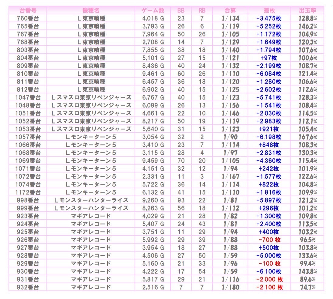 ※本記事中のデータは全て神の子来店ホール調査取材班が独自に調査しているものです。