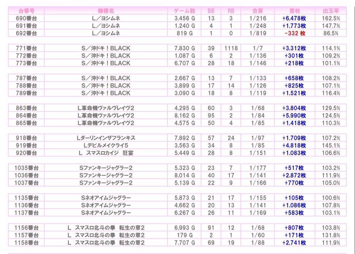 ※本記事中のデータは全て神の子来店ホール調査取材班が独自に調査しているものです。