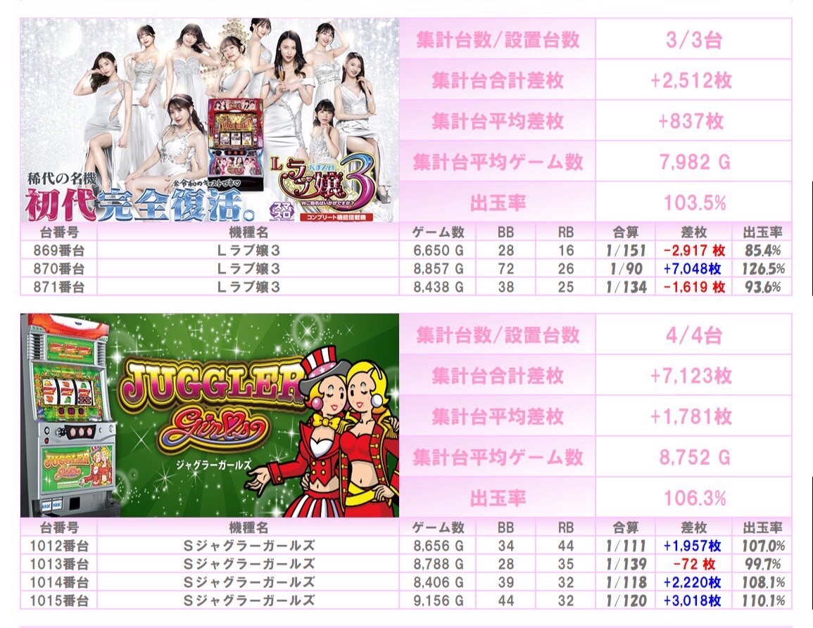 ※本記事中のデータは全て神の子来店ホール調査取材班が独自に調査しているものです。