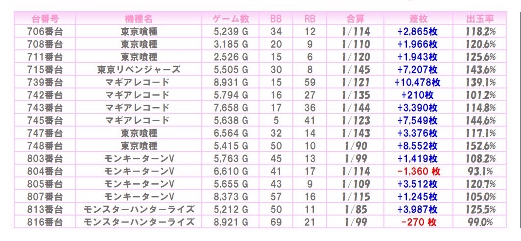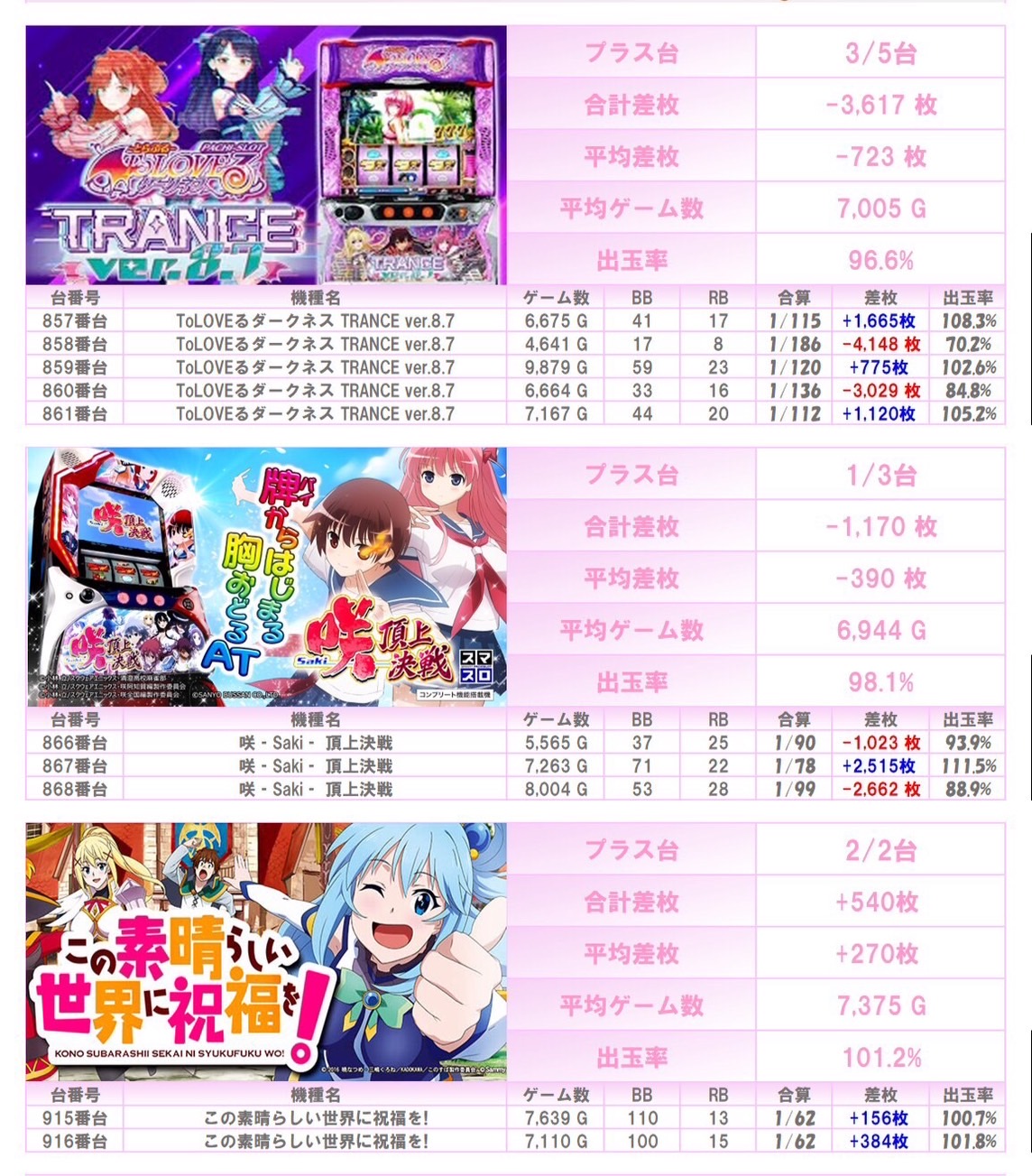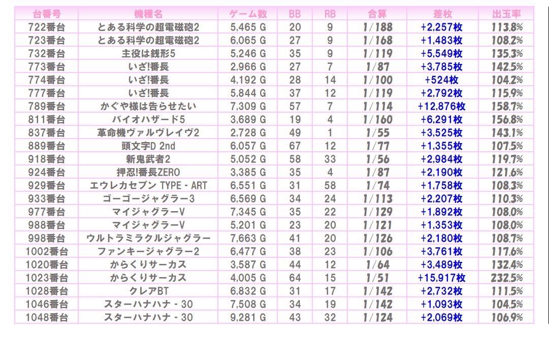 ※本記事中のデータは全て神の子来店ホール調査取材班が独自に調査しているものです。
