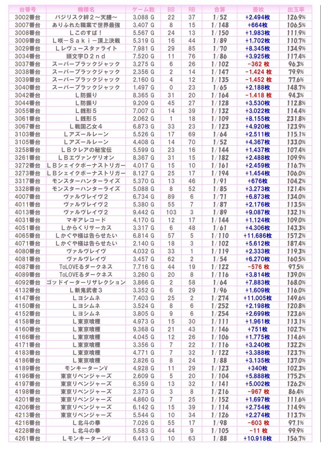 ※本記事中のデータは全て神の子来店ホール調査取材班が独自に調査しているものです。