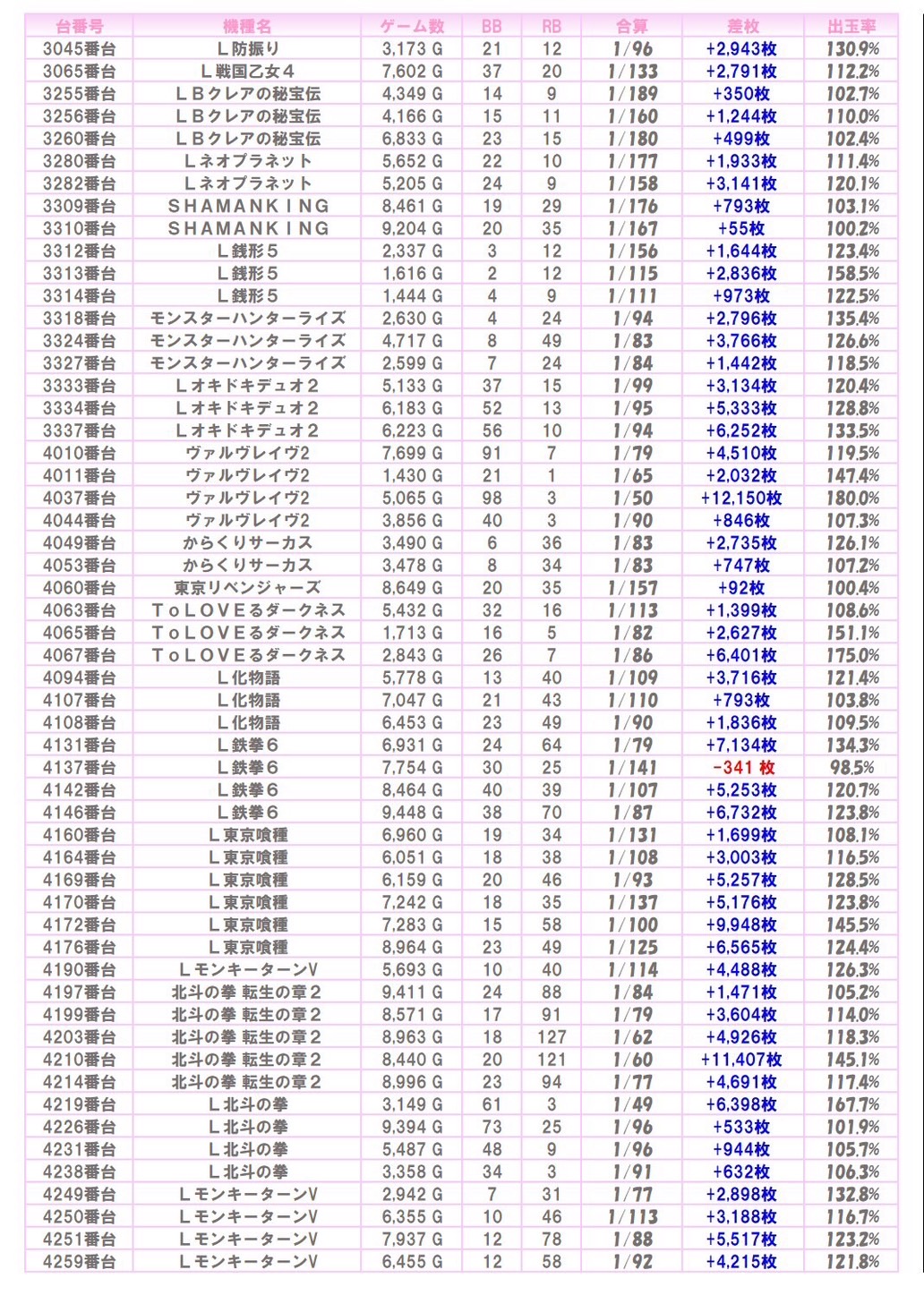 ※本記事中のデータは全て神の子来店ホール調査取材班が独自に調査しているものです。