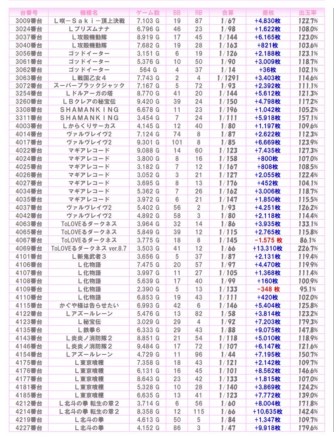 ※本記事中のデータは全て神の子来店ホール調査取材班が独自に調査しているものです。