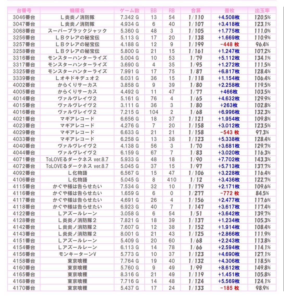 ※本記事中のデータは全て神の子来店ホール調査取材班が独自に調査しているものです。