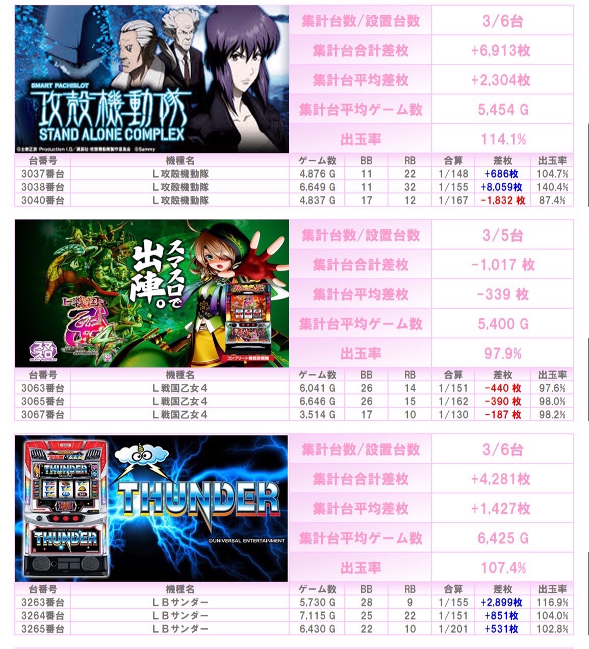 ※本記事中のデータは全て神の子来店ホール調査取材班が独自に調査しているものです。