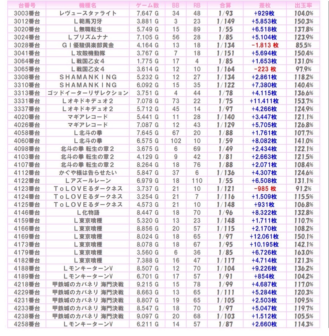 ※本記事中のデータは全て神の子来店ホール調査取材班が独自に調査しているものです。
