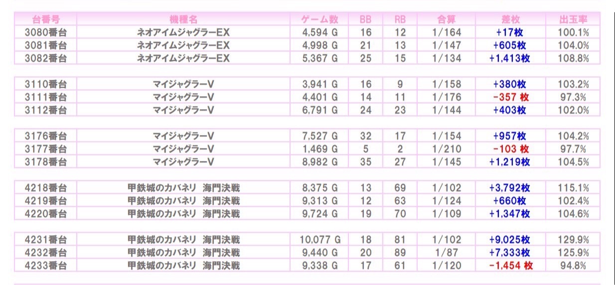 ※本記事中のデータは全て神の子来店ホール調査取材班が独自に調査しているものです。