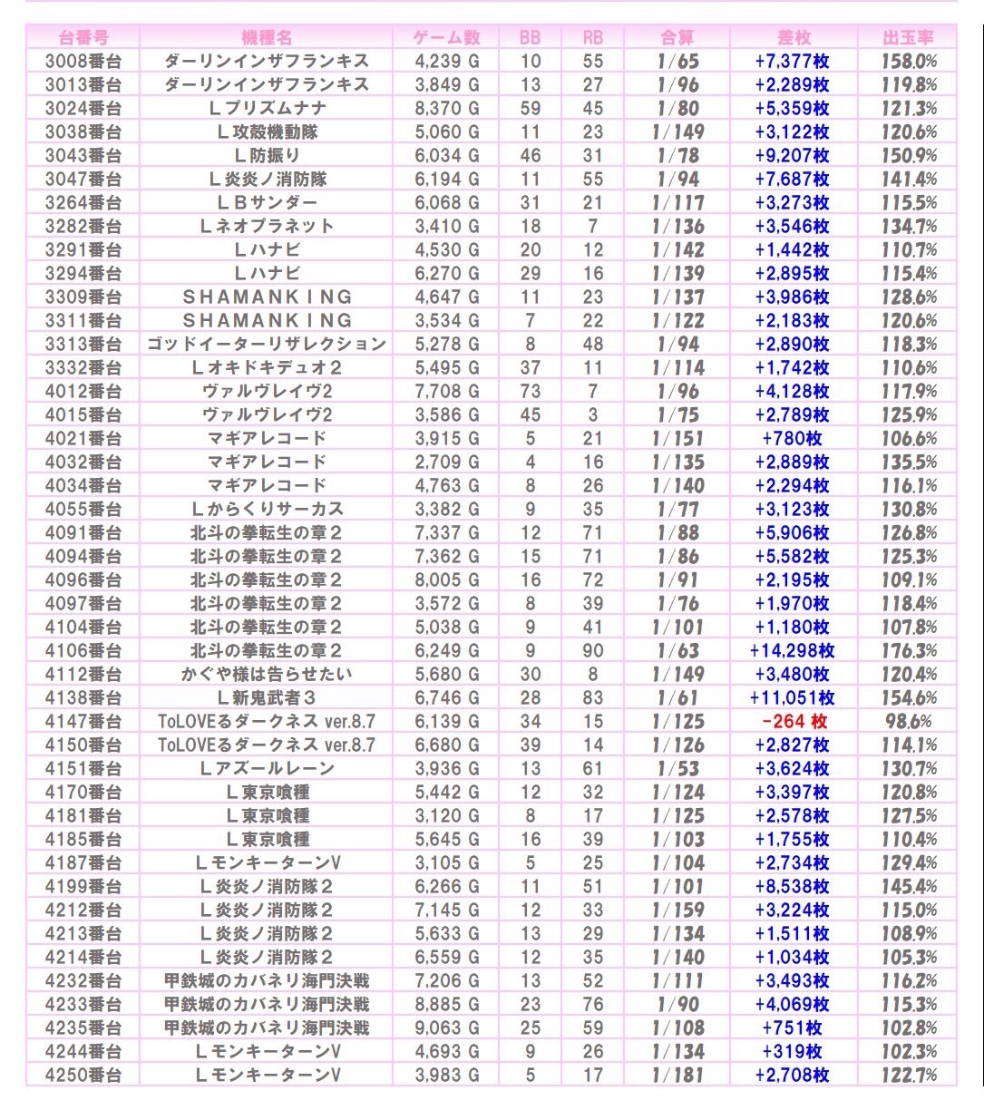 ※本記事中のデータは全て神の子来店ホール調査取材班が独自に調査しているものです。