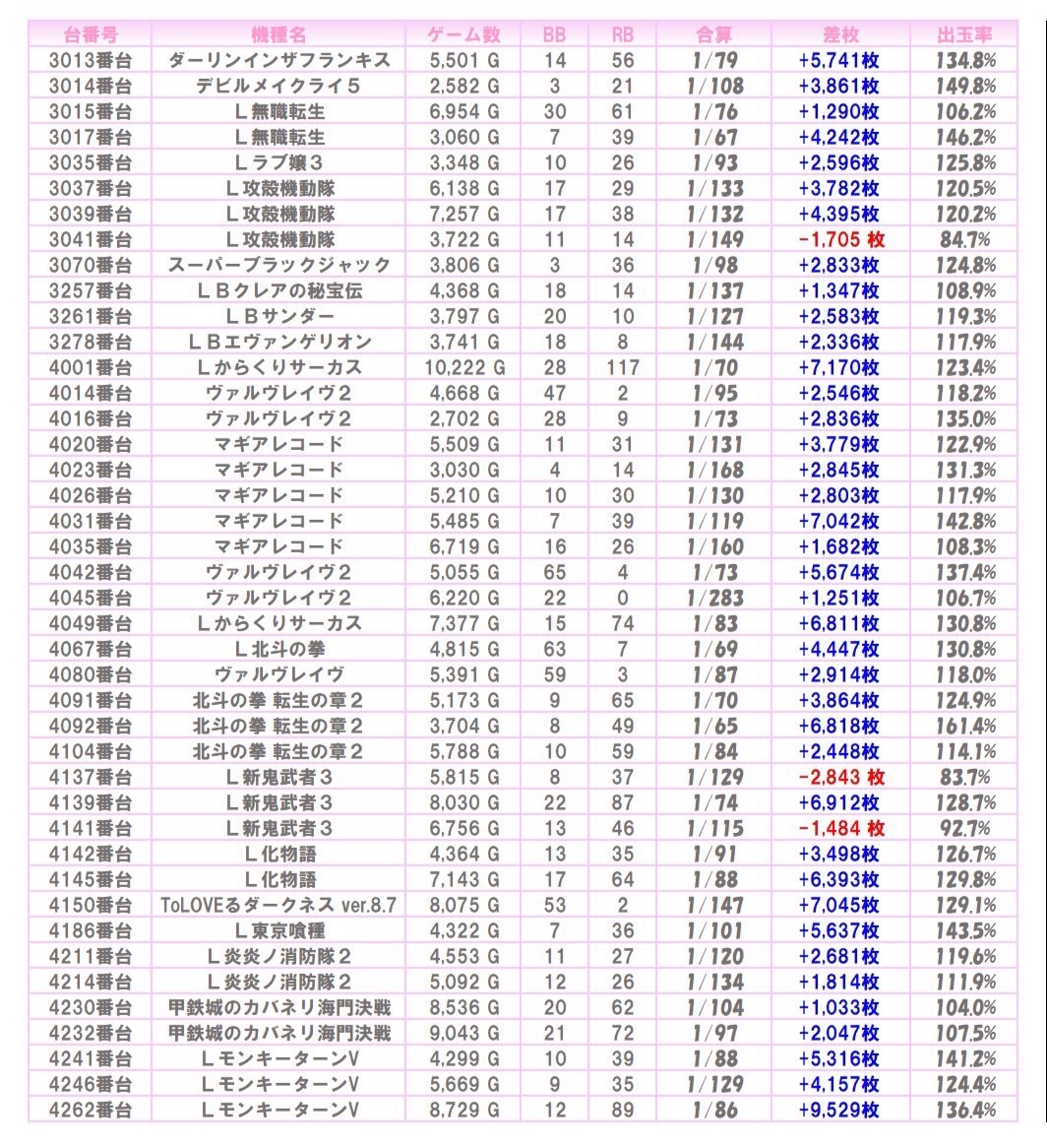 ※本記事中のデータは全て神の子来店ホール調査取材班が独自に調査しているものです。