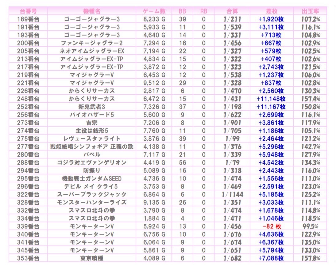 ※本記事中のデータは全て神の子来店ホール調査取材班が独自に調査しているものです。