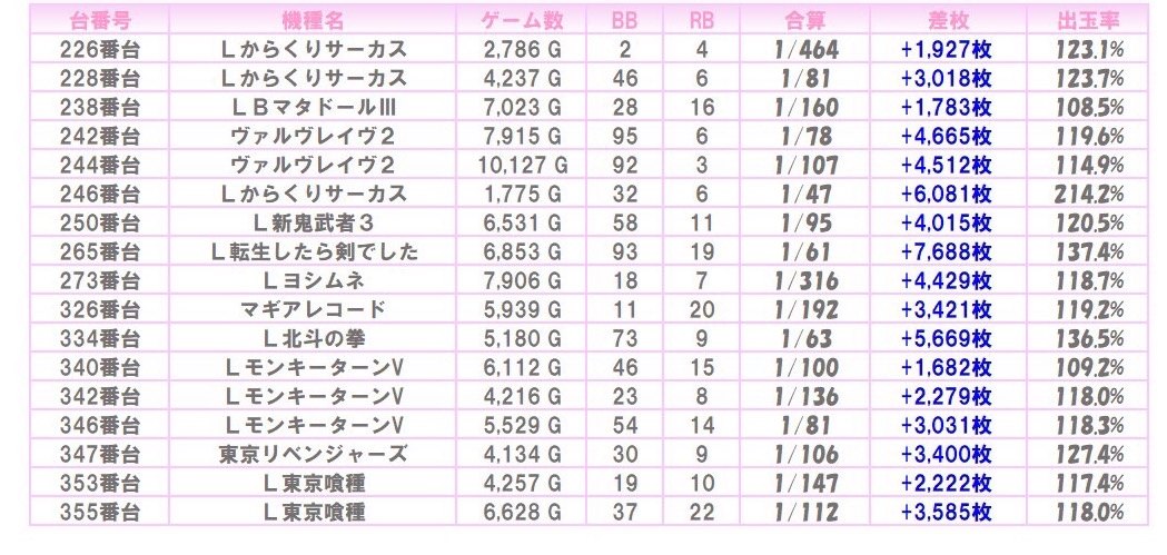 ※本記事中のデータは全て神の子来店ホール調査取材班が独自に調査しているものです。
