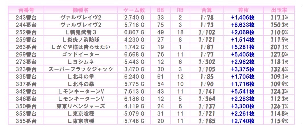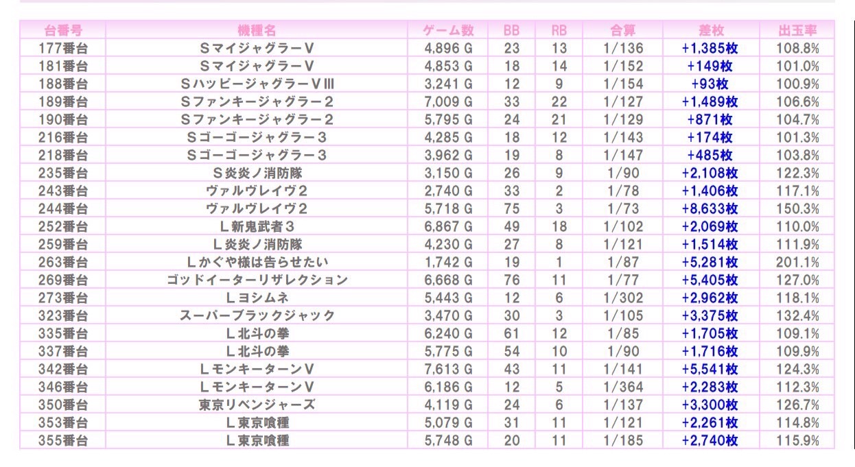 ※本記事中のデータは全て神の子来店ホール調査取材班が独自に調査しているものです。
