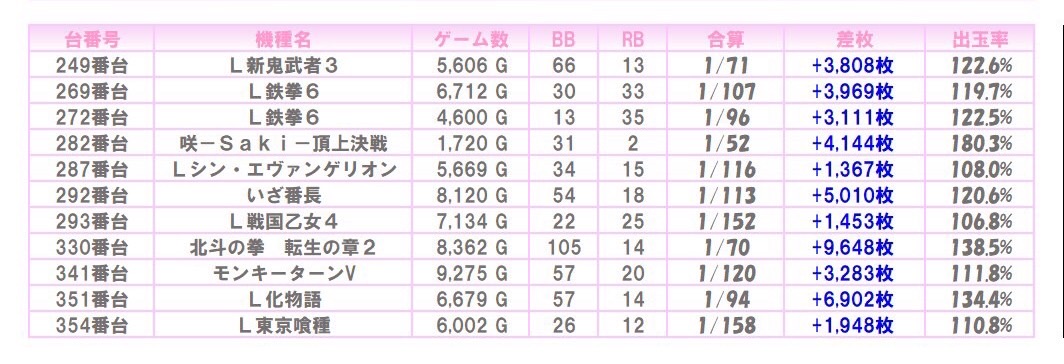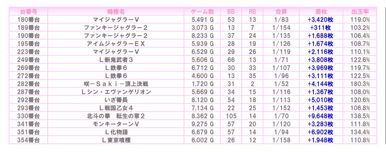 ※本記事中のデータは全て神の子来店ホール調査取材班が独自に調査しているものです。