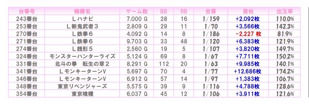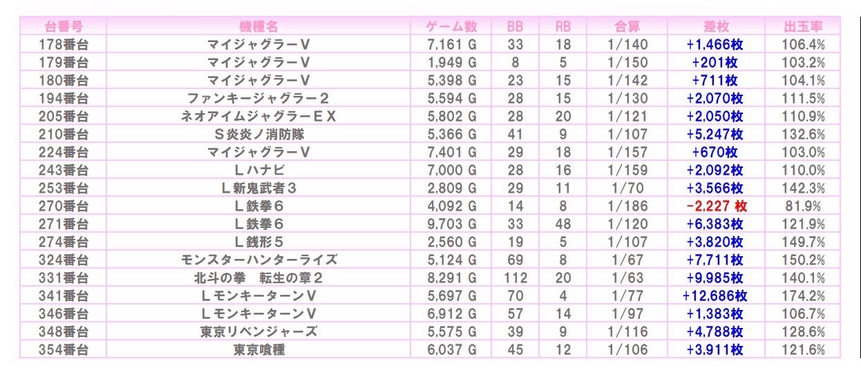 ※本記事中のデータは全て神の子来店ホール調査取材班が独自に調査しているものです。