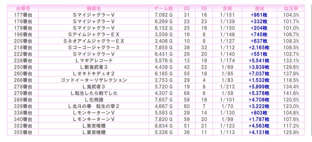 ※本記事中のデータは全て神の子来店ホール調査取材班が独自に調査しているものです。