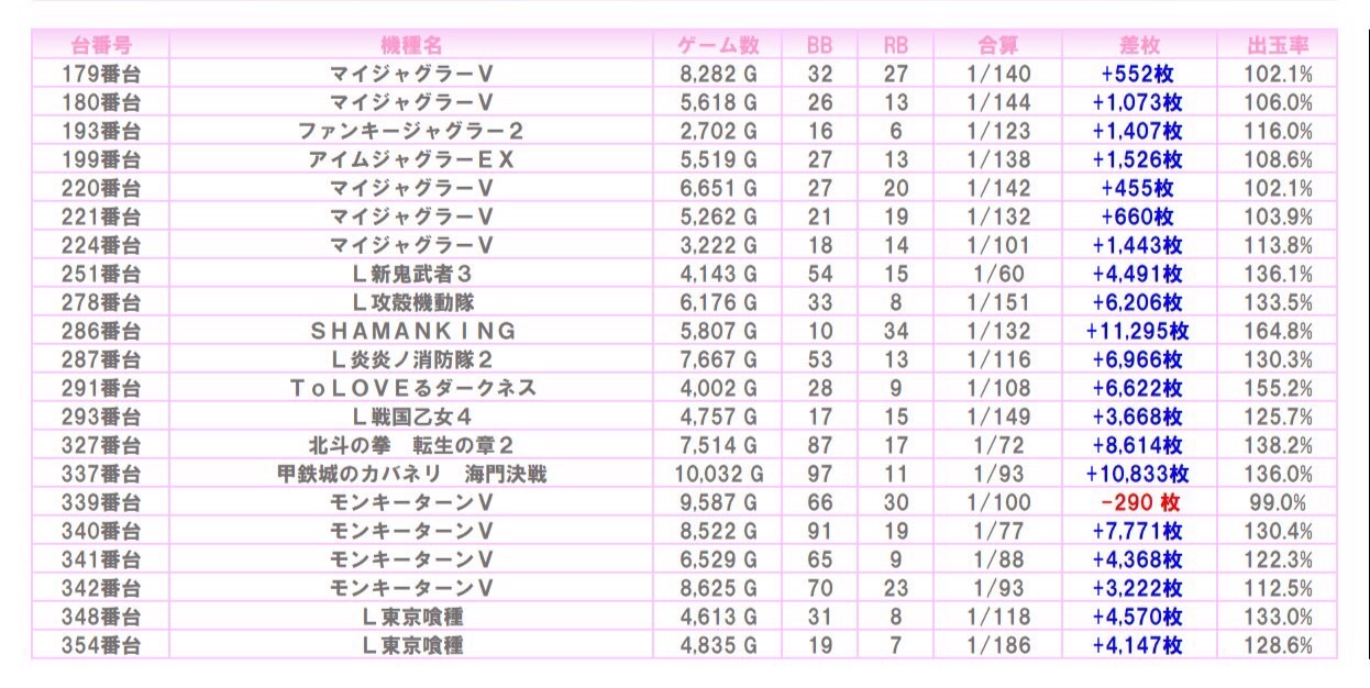 ※本記事中のデータは全て神の子来店ホール調査取材班が独自に調査しているものです。