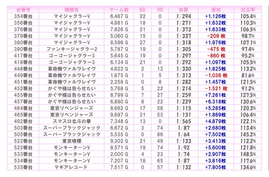 ※本記事中のデータは全て神の子来店ホール調査取材班が独自に調査しているものです。