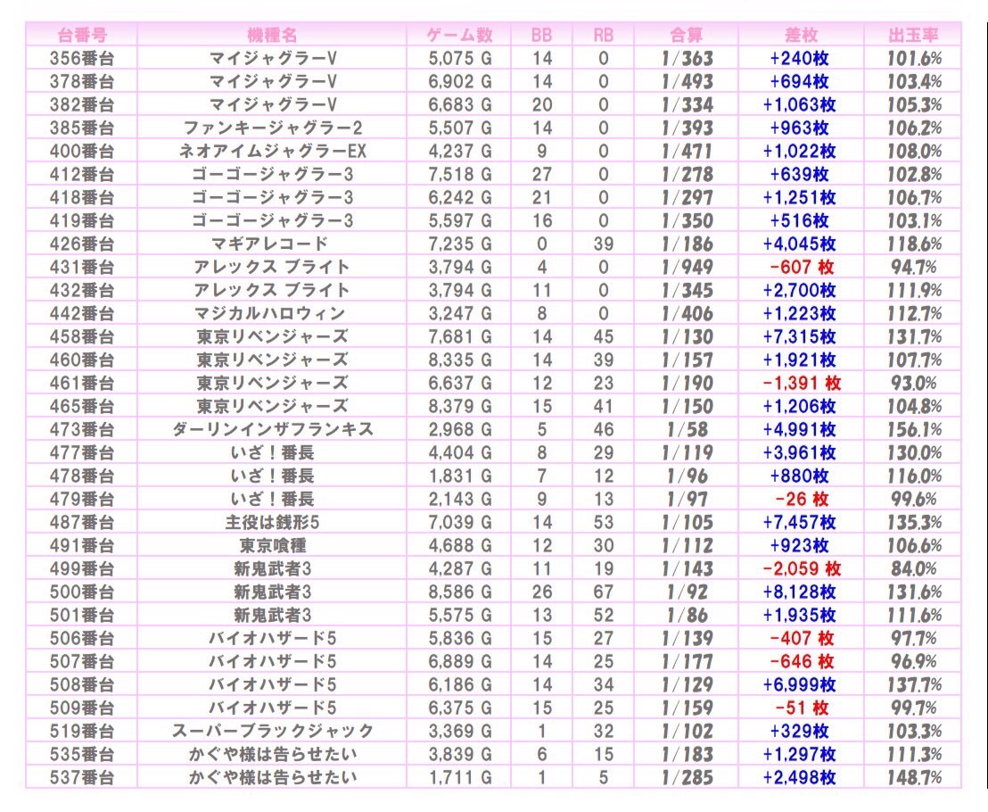 ※本記事中のデータは全て神の子来店ホール調査取材班が独自に調査しているものです。
