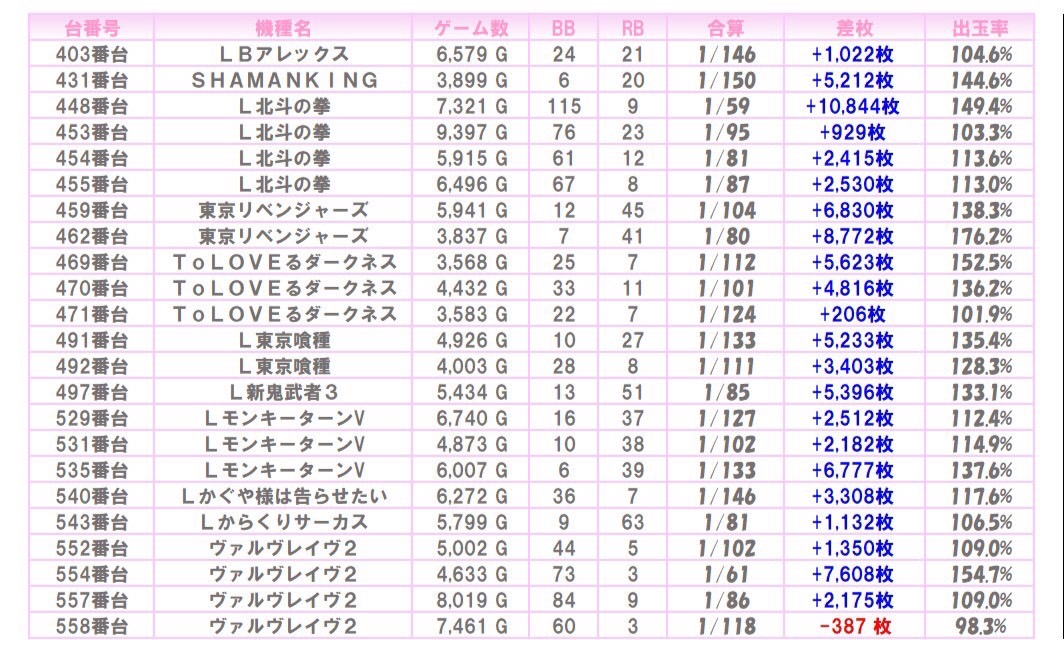 ※本記事中のデータは全て神の子来店ホール調査取材班が独自に調査しているものです。