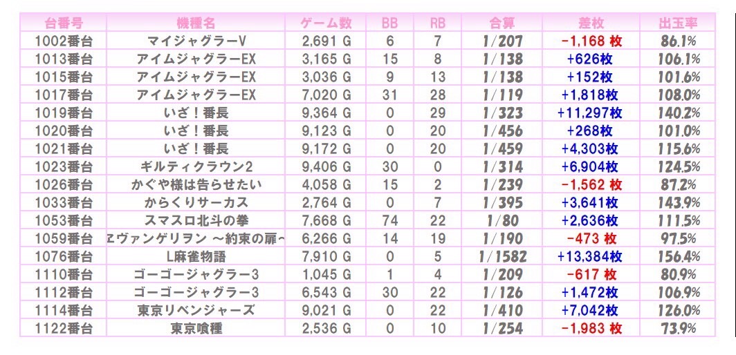 ※本記事中のデータは全て神の子来店ホール調査取材班が独自に調査しているものです。