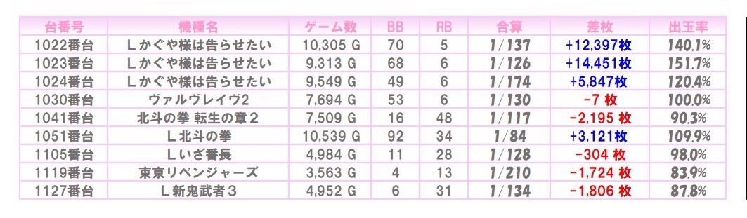 ※本記事中のデータは全て神の子来店ホール調査取材班が独自に調査しているものです。