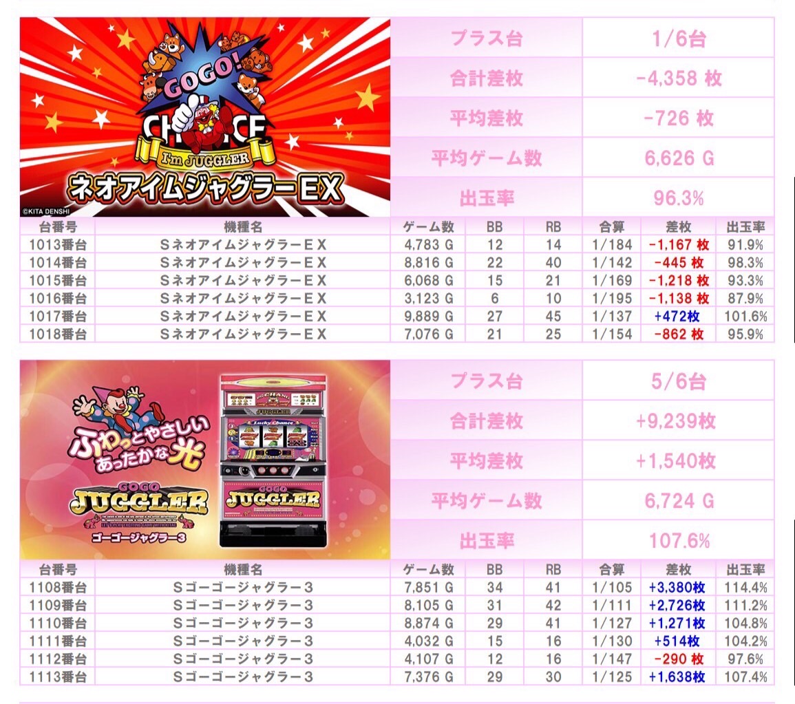 ※本記事中のデータは全て神の子来店ホール調査取材班が独自に調査しているものです。